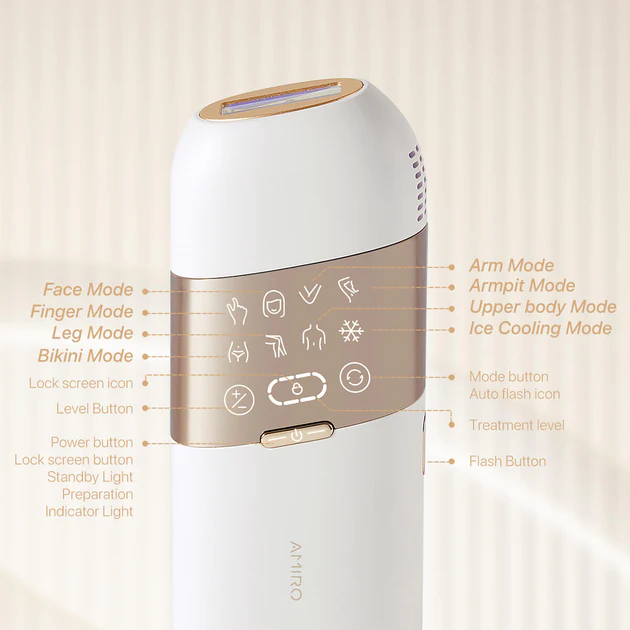 AMIRO Opal IPL Hair Removal Handset is the perfect solution for achieving incredibly smooth and hair-free skin from the comfort of your own home. It features an innovative ice cooling function alongside an advanced IPL hair removal system equipped with eight energy levels and seven working modes, making it a fast, efficient, and long-lasting at-home hair removal solution.