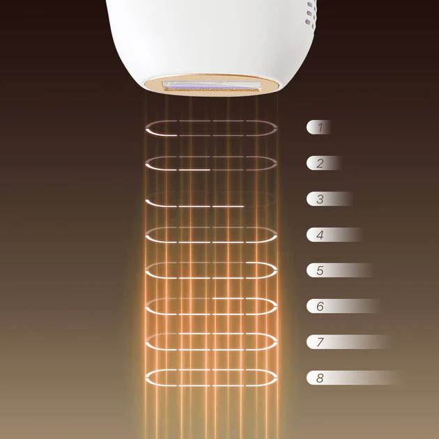 Our device offers 8 adjustable energy levels, allowing you to customize your own temperature comfortability. Our ice cooling technology offers a skin-friendly temperature of 50°F, making your skin comfortable and harmless, and enables IPL pulse light focusing on hair follicles to ensure smooth hair removal.