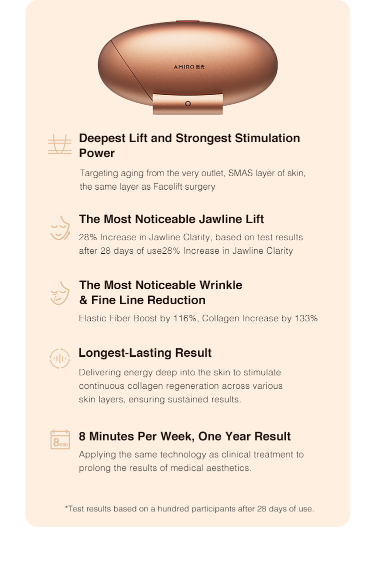 The AMIRO device employs the same technology, delivering high-energy waves through proprietary square-wave technology to penetrate deep beneath the skin safely and effectively, without pain or downtime.