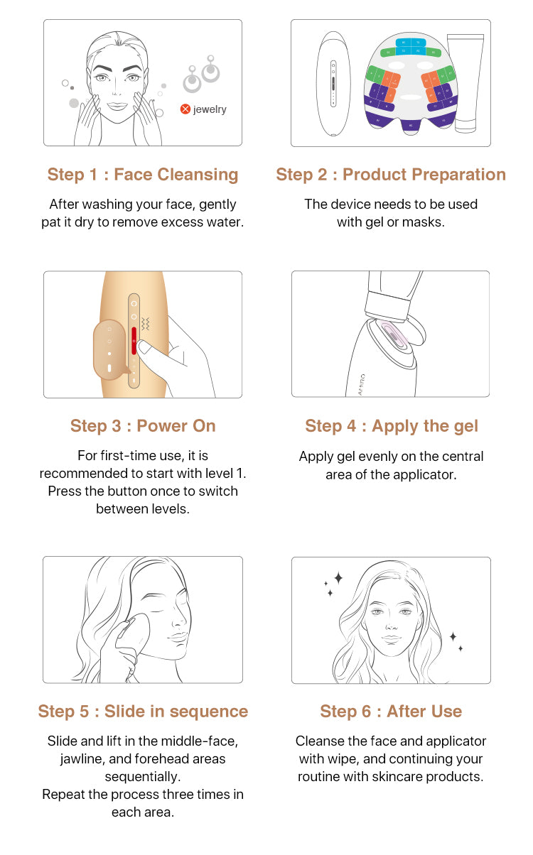 *Start with level one to test and gradually build up your tolerance to the energy.*Avoid using the device on the following areas on the face during facial treatment: