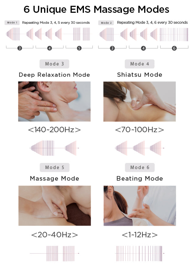 *The front of your neck is normally more sensitive compared to its side and back. We recommend starting at the lowest EMS intensity if you're new to an EMS neck massager.