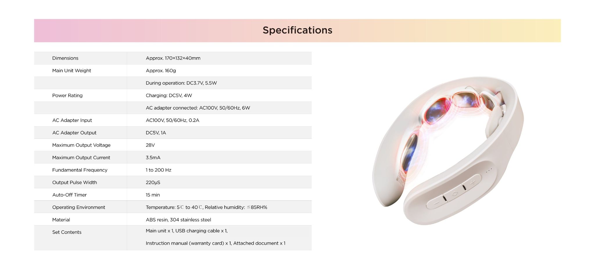 | Body Rating | During operation: DC3.7V, 5.5W (electric heating device: 4.5W) |
